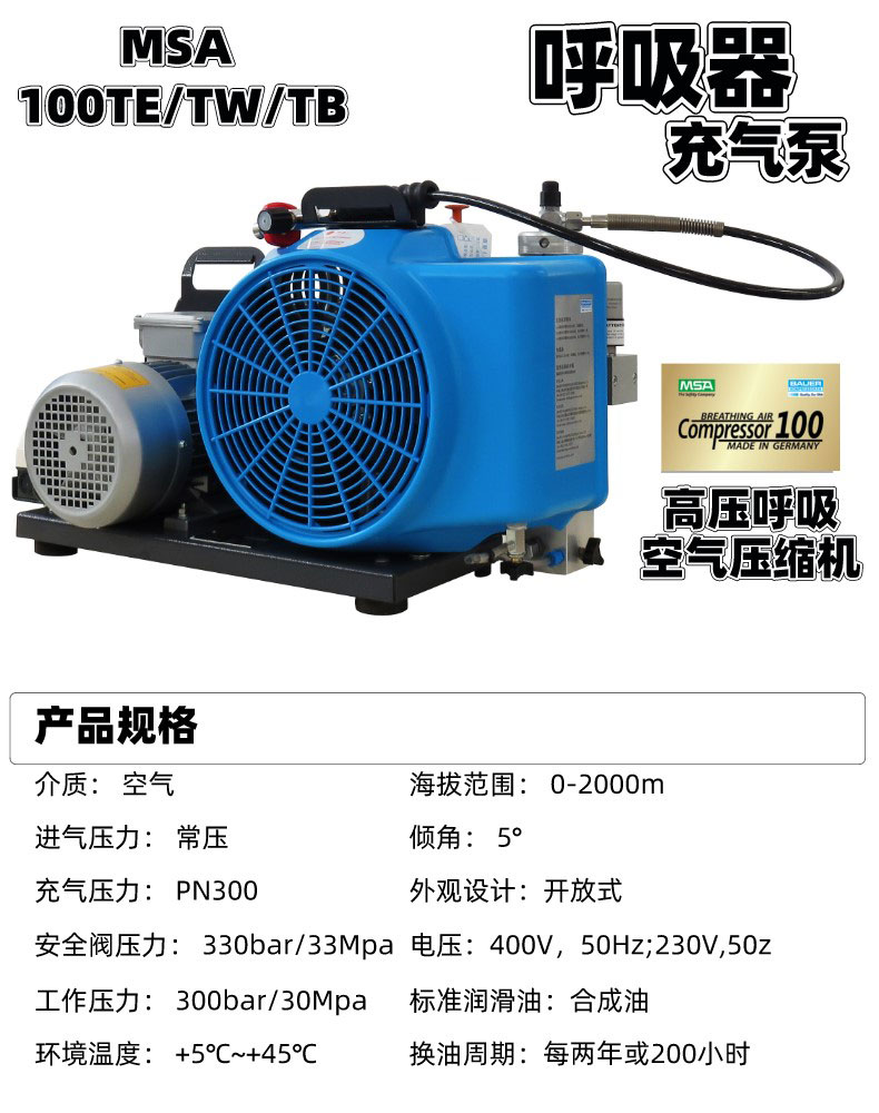 梅思安气瓶充气泵MSA 100TE 高压呼吸空气压缩机